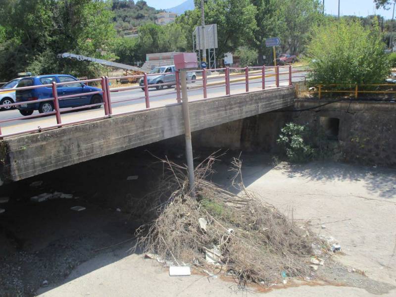 Εικόνα εγκατάλειψης στο Νέδοντα, στη γέφυρα της Σπάρτης πάνω από την Κεντρική Αγορά Καλαμάτας, για το μηχάνημα που μετράει τη στάθμη του νερού.