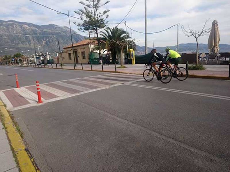 Με την κίνηση στους δρόμους να έχει περιοριστεί αισθητά, οι ποδηλάτες έχουν την άνεση να κάνουν τη σωματική τους άθληση χωρίς το φόβο της κυκλοφοριακής συμφόρησης. Η φωτογραφία από τη Ναυαρίνου είναι χαρακτηριστική