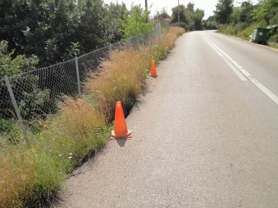 ΚΩΝΟΙ έχουν τοποθετηθεί σε επικίνδυνο σημείο του δρόμου Ριζόμυλος - Κορώνη, στο τμήμα ανάμεσα σε Καλαμάκι και Χράνους. Στην άκρη έχει υποχωρήσει η περίφραξη του κτήματος και η υψομετρική διαφορά εγκυμονεί κινδύνους για όποιον οδηγό ξεφύγει από την πορεία του. Και αυτό δεν είναι το μοναδικό επικίνδυνο σημείο της προβληματικής  διαδρομής... σ’ έναν από τους πιο σημαντικούς δρόμους της Μεσσηνίας. Επειδή με κώνους δεν υπάρχει προστασία, οι αρμόδιες υπηρεσίες οφείλουν να δώσουν τις πραγματικές λύσεις. Γιατί πρόκειται για την προστασία της ανθρώπινης ζωής.
