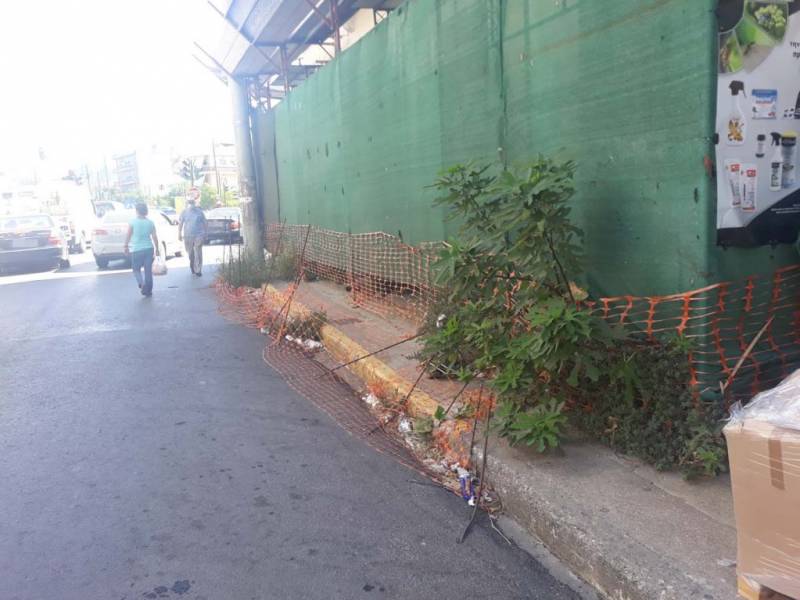 Πρόσφατα ένας πεζός έπεσε και ευτυχώς χτύπησε ελαφρά. Αμεσα, επιτέλους, πρέπει να γίνει άρση της επικινδυνότητας του παρακείμενου κτηρίου -παραμένει έτσι κάποια χρόνια- για να απομακρυνθεί η διαλυμένη περίφραξη και να απελευθερωθεί το πεζοδρόμιο.