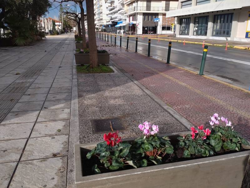 Παρότι μπήκαμε επίσημα στον χειμώνα ο δήμος τοποθέτησε πολύχρωμα κυκλάμινα και στο νότιο πεζοδρόμιο, αντικαθιστώντας τα παλιά άνθη που είχαν ξεραθεί. Αν μη τι άλλο για όσους απολαμβάνουν τη βόλτα τους στην παραλία τέτοιες πρωτοβουλίες την κάνουν ακόμα πιο ευχάριστη.