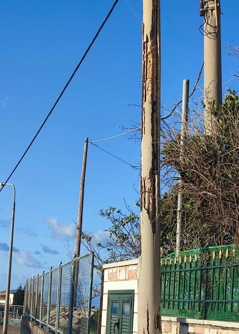Η τσιμεντένια κολόνα έχει διαβρωθεί σε μεγάλο βαθμό και τα σίδερα στο εσωτερικό της έχουν σκουριάσει. Καλό είναι να απομακρυνθεί πριν πέσει σε κανένα διερχόμενο όχημα ή πεζό.