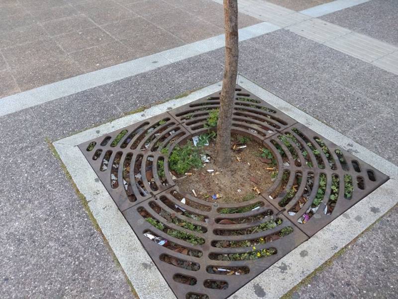 Σε αυτοσχέδια σταχτοδοχεία μετατρέπονται οι περισσότερες σιδερένιες βάσεις δέντρων στο κέντρο της Καλαμάτας.
