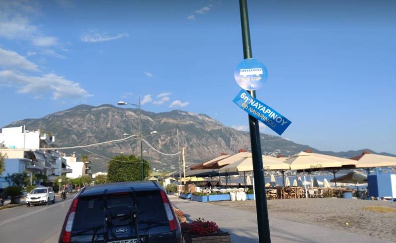 Έτοιμη να πέσει στο έδαφος είναι η πινακίδα που ενημερώνει για την 6η στάση του λεωφορείου στη Ναυαρίνου.