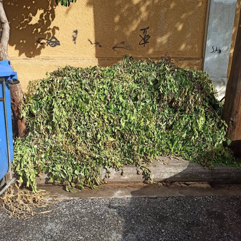 Η μέθοδος αποκομιδής των κλαδεμάτων στο Δήμο Καλαμάτας έχει αποτύχει πλήρως και τα κλαδιά είτε στοιβάζονται στα πεζοδρόμια είτε "κρύβονται" κάτω από σακούλες σκουπιδιών στους κάδους των απορριμμάτων.