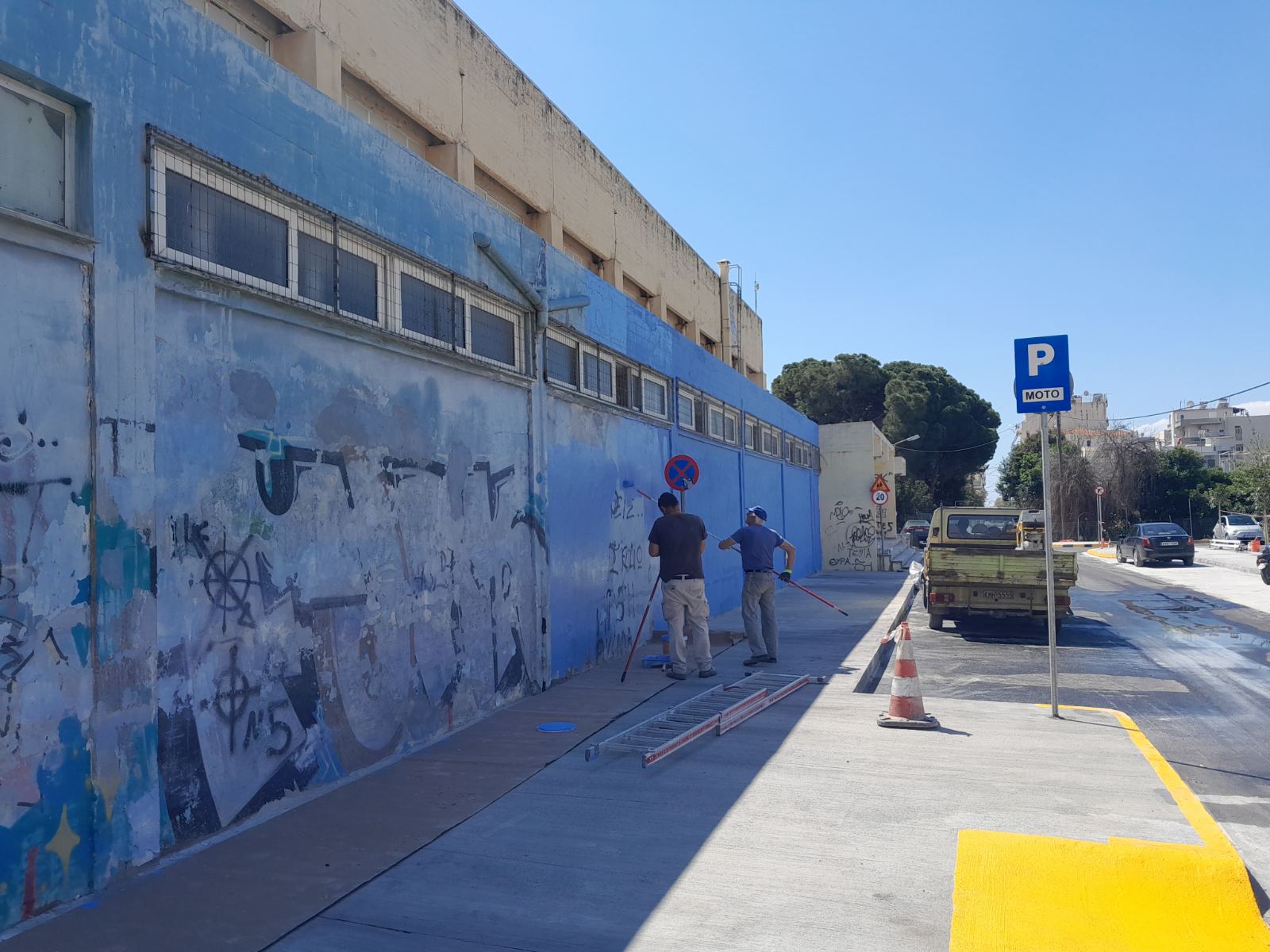 Τον τοίχο του Κλειστού Γυμναστηρίου στην Παραλία, στο Δημοτικό Στάδιο Καλαμάτας, έβαφε χθες συνεργείο του δήμου, στο πλαίσιο των εργασιών εξωραϊσμού της περιοχής, με τη διαμόρφωση του πάρκινγκ που είναι σχεδόν έτοιμο.