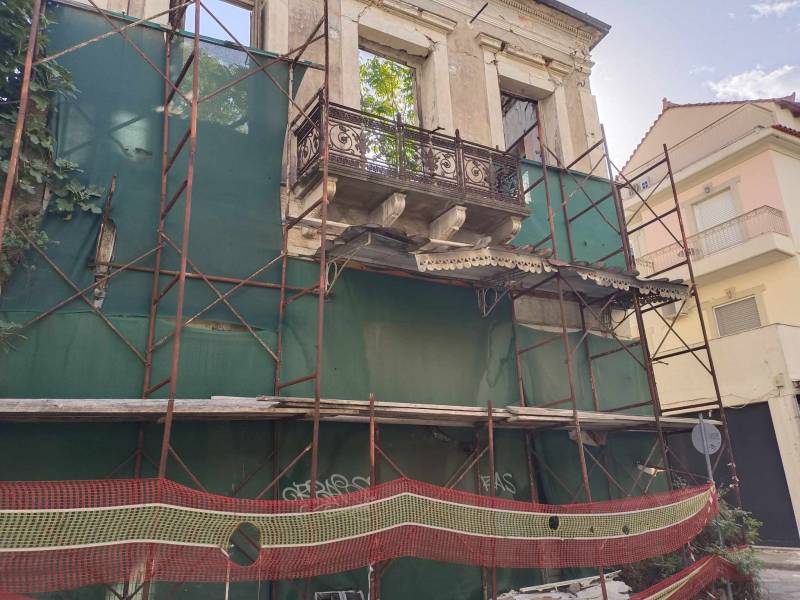 Έτοιμο να καταρρεύσει είναι πρόχειρο υπόστεγο εγκαταλελειμμένου κτηρίου επί της οδού Αναγνωσταρά, στο ύψος του πεζόδρομου Χρ. Κουμάντου.