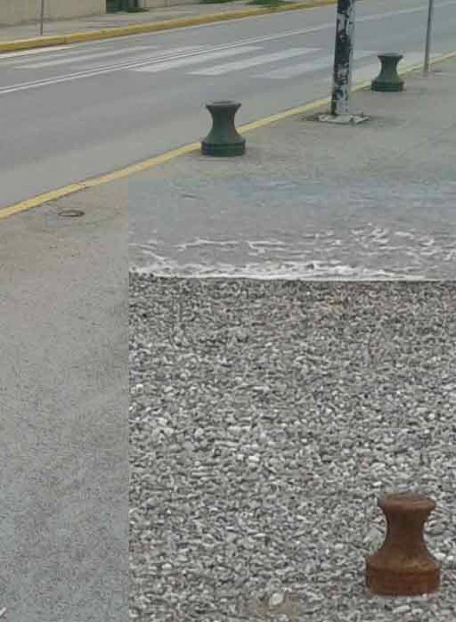 Ο σκουριασμένος σιδερένιος κώνος κάποτε ήταν στο πεζοδρόμιο της οδού Ναυαρίνου. Σήμερα βρίσκεται στην παραλία δίπλα στο κύμα. Που θα είναι αύριο;