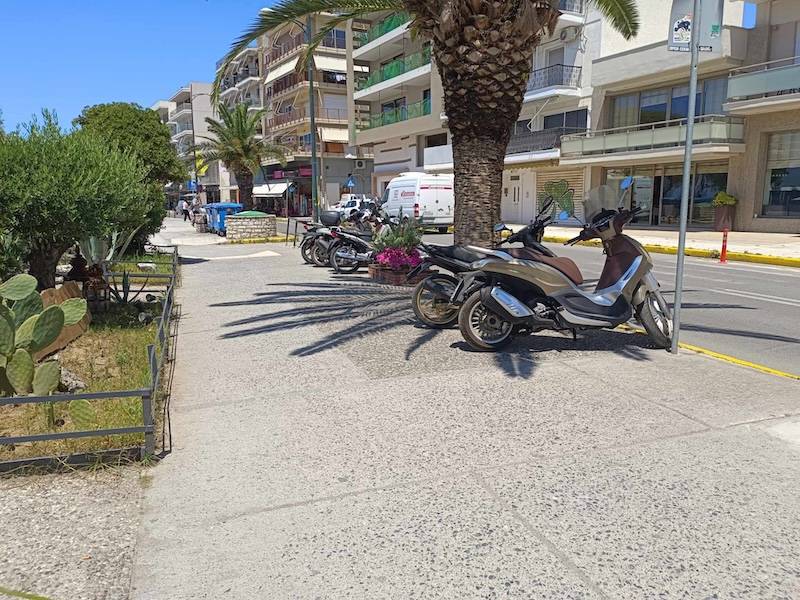 Με τις θέσεις στάθμευσης για μηχανάκια να μην υφίστανται από το ύψος της Ανάστασης και προς στο ρεύμα εξόδου, καθημερινά πλέον δημιουργούνται εικόνες σαν αυτή, κάτι που σχολιάζεται αρνητικά από τους πεζούς, ιδίως σε σημεία όπου τα δίκυκλα μπορούν να τακτοποιηθούν στον δρόμο.