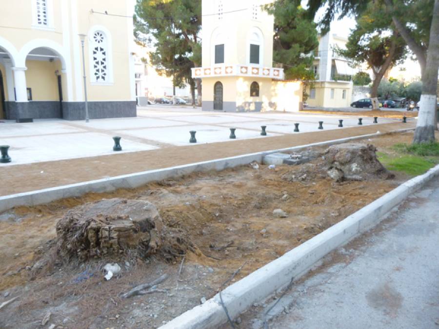 Επειδή στην πλατεία μειώθηκε και το πράσινο, καθώς μίκρυνε το πάρκο που υπήρχε, επιβάλλεται τα δέντρα να αντικατασταθούν με άλλα, τα οποία θα αναπτυχθούν εύκολα. Και αν γίνεται, να συμπληρωθεί και το χαμηλό πράσινο.
