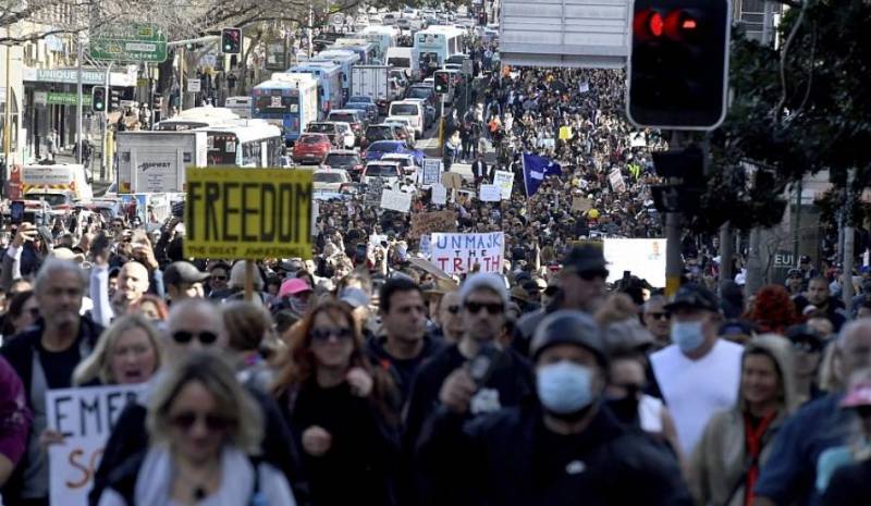 Στο μεταξύ σήμερα πραγματοποιήθηκαν σε αρκετές μεγάλες πόλεις της Αυστραλίας διαδηλώσεις κατά του lockdown, αναφέρει το ΑΠΕ.