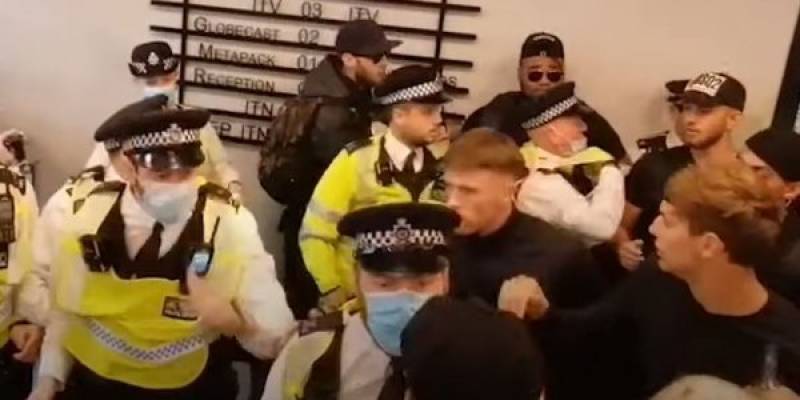 Εφοδο στα κεντρικά γραφεία των ITV και Channel 4 στο Λονδίνο έκανα εκατοντάδες αντιεμβολιαστές που διαδήλωναν κατά των εμβολίων για τον κορονοϊό.