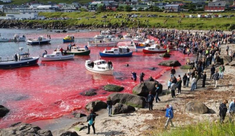 Πρόκειται για τον μεγαλύτερο καταγεγραμμένο αριθμό νεκρών δελφινιών από το έθιμο με το όνομα Grindadrap ή Grind στα νησιά Φερόε. Οι κάτοικοι των νησιών συνήθως σκοτώνουν έως και 1.000 θαλάσσια θηλαστικά ετησίως, σύμφωνα με τα στοιχεία που έρχονται από τα Νησιά Φερόε.