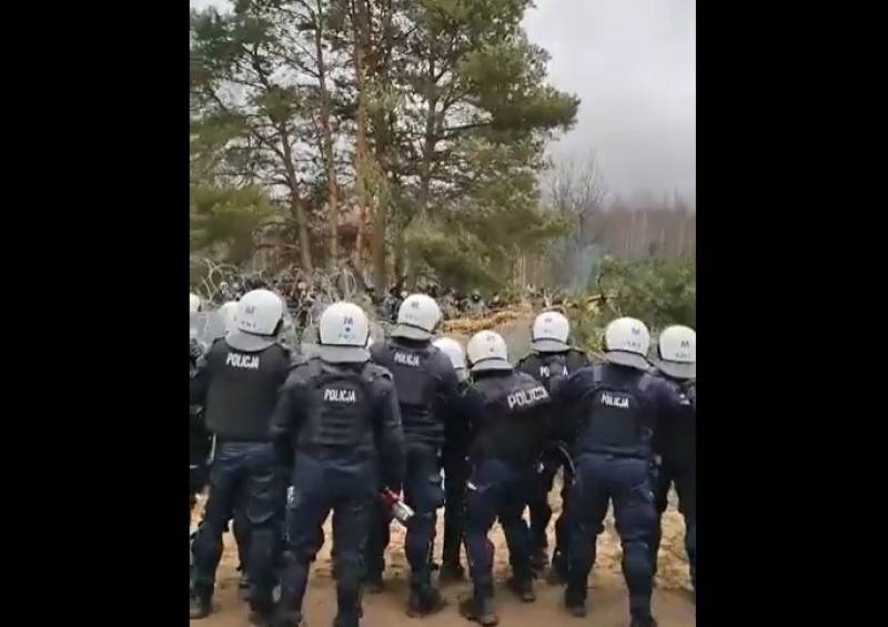 The #Polish Interior Ministry published video of a clash between law enforcers and migrants near the border.@tvp_info @tvn24 @PolsatNewsPL @GPtygodnik pic.twitter.com/aYTIr79wJp