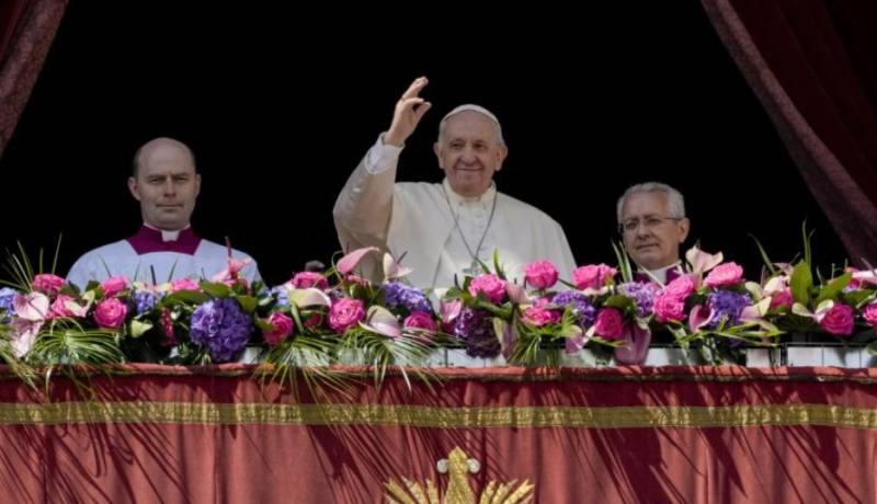 Ο ποντίφικας υπογράμμισε ότι «τα βλέμματά μας είναι γεμάτα έκπληξη, σε αυτό το Πάσχα πολέμου» και ότι «υπάρχει πάρα πολύ αίμα και βία, πάρα πολλές αδελφές και αδελφοί προσπαθούν να σωθούν από τις βόμβες». «Χριστός Ανέστη, σήμερα αντηχεί η φράση αυτή, η οποία είναι τόσο πολύτιμη για την χριστιανική ανατολή», είπε χαρακτηριστικά.