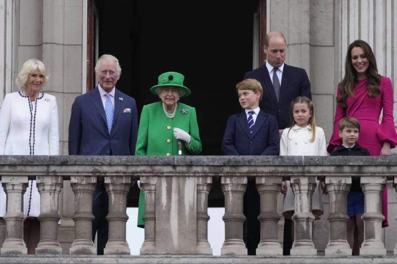 Ντυμένη στα πράσινα, η 96χρονη βασίλισσα, η οποία απουσίασε από τις περισσότερες εκδηλώσεις του πλατινένιου ιωβηλαίου της, βγήκε στον εξώστη συνοδευόμενη από τους διαδόχους της, τους πρίγκιπες Κάρολο και Ουίλιαμ, με συζύγους και παιδιά, πριν ανακρουστεί ο βρετανικός ύμνος «God Save the Queen».