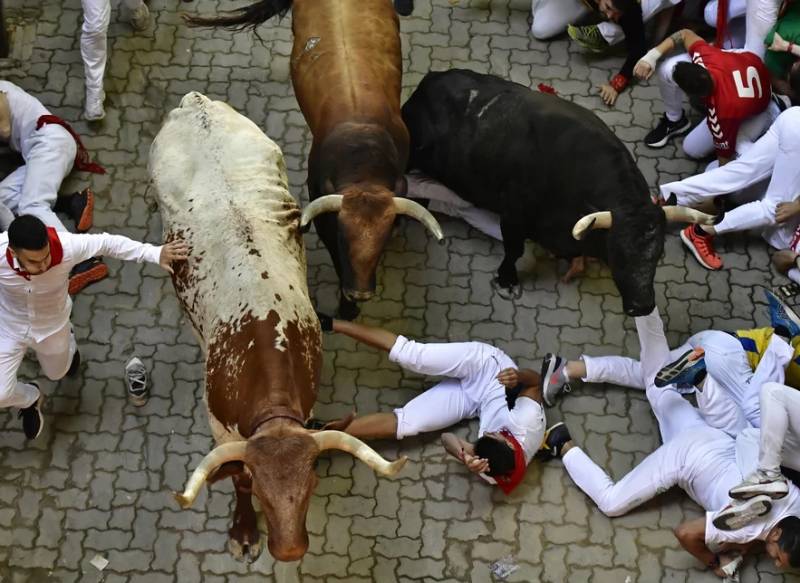 Η σημερινή εκδήλωση δεν ήταν η πρώτη κατά την οποία οι ταύροι πήραν την εκδίκησή τους. Άλλοι τρεις δρομείς είχαν τραυματιστεί από τα κέρατα των γιγαντόσωμων ζώων στη διάρκεια της σαββατιάτικης κούρσας και χρειάστηκε να διακομιστούν στο νοσοκομείο.